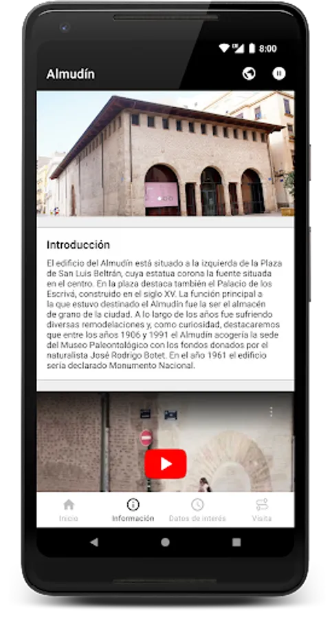 The Almudín was built on the Muslim quarterdeck in the early 14th century as a place for storing and selling wheat. Its dimensions were expanded throughout the XV and XVI centuries until it acquired its current appearance. Inside it contains wall paintings of popular character alluding to the entry of wheat into the city, as well as representations of the patron saints of the guilds that operated in the grain trade. In 1969 it was declared a Historic Artistic Monument. Between 1906 and 1991 the almudín was the headquarters of the Paleontological Museum, and after its restoration in 1996, it is dedicated to an exhibition hall.