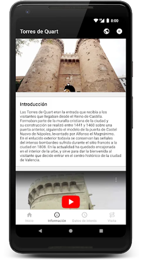 The Torres de Quart were the entrance that received visitors arriving from the Kingdom of Castile. They were part of the Christian wall of the city and its construction was carried out between 1441 and 1460 on a previous door, following the model of the Castel Nuovo door in Naples, built by Alfonso the Magnanimous. The signs of the intense bombardment suffered during the French siege of the city in 1808 are still preserved on the exterior plaster. Today it has been boxed inside the city, and serves to welcome the visitor who decides to enter the center. historical of the city of Valencia.