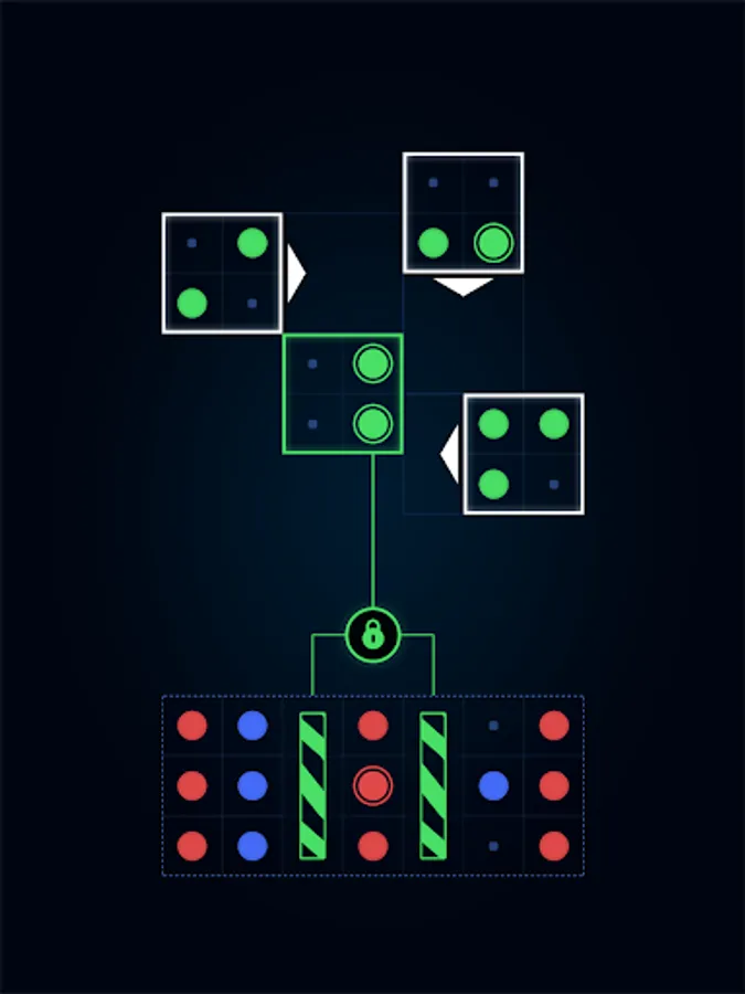 Its gameplay is quite simple: you move the dots freely until you form a square with 4 or 9 dots; You can move as many dots you’d want at same time, that will look much like dragging snake across the level; The dots can be varied in up to 3 colors: red, green and blue but squares will only be formed by dots with the same color.