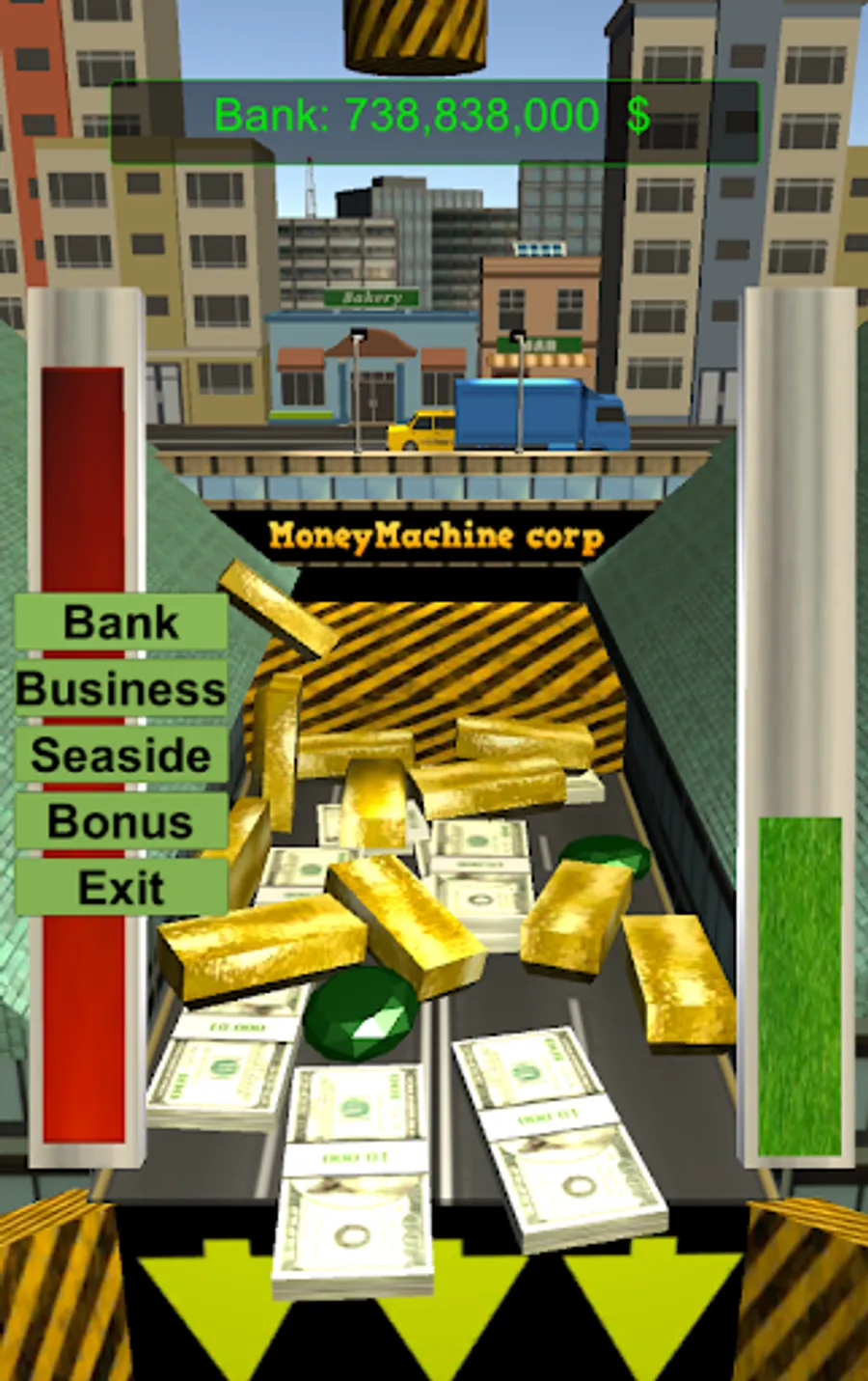 Each business unlock new treasure. At first would be thick money packs. Money rain starts, cash dozer push income and then collect gaming money. Further would be much more expensive treasure as a gold bars, gems and other.