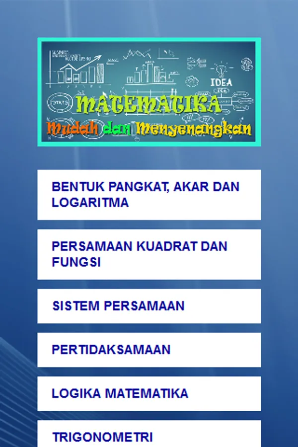 We hope, with this application, students more easily understand and learn mathematics so that the study of mathematics has become fun.