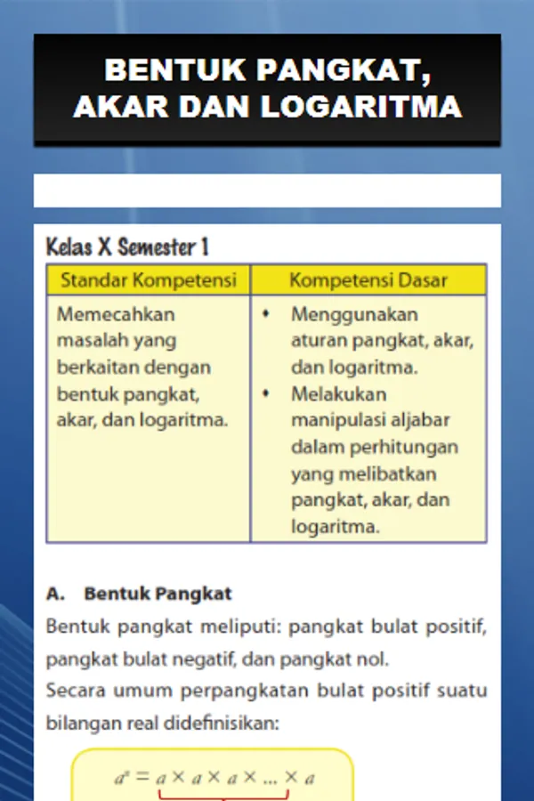 High School Math Summary Application presents a complete mathematical material ranging from class X, XI and XII (grade 1 to grade 3 SMA / MA). The material is presented in a coherent, complete and thorough so it is very easy to understand. This application is intentionally presented in a practical size to be easy to understand so that learning can be done anywhere and anytime.