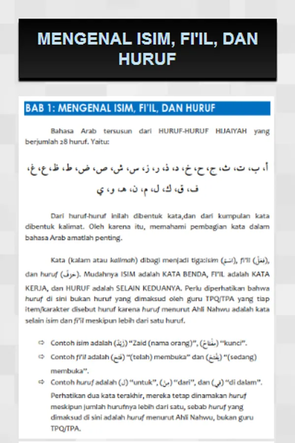 1. Know Isim, ficil, and letters