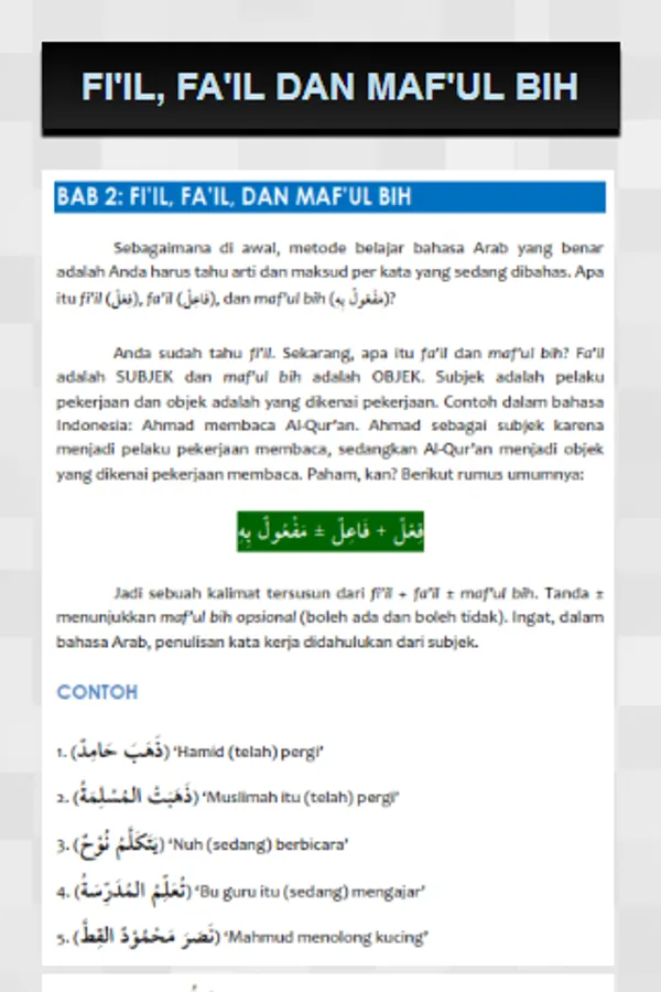 2. ficil, fa'il and maf'ul bih