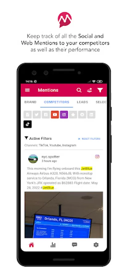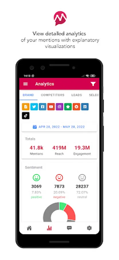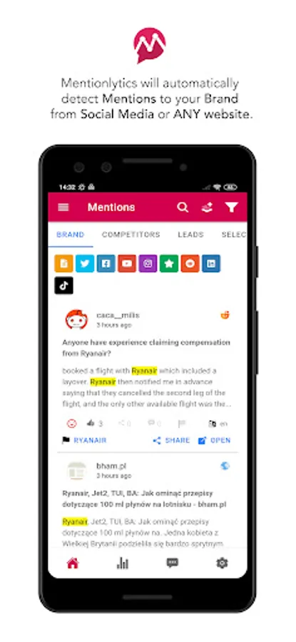 Sign up for Mentionlytics, our award-winning social media monitoring app, and get detailed reports of mentions to your brand, competitors or any keyword from web and all popular social media within seconds. Track all mentions to your brand on the go, never miss a competitor move, and be informed about what is going on in your industry at all times.