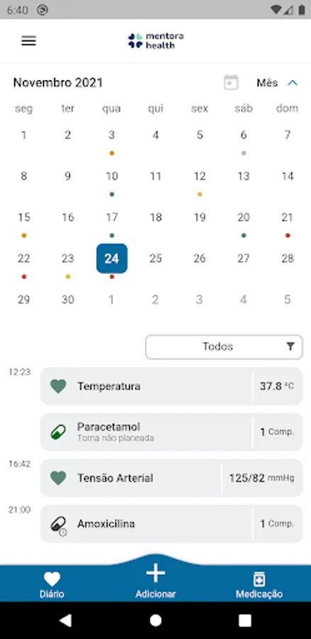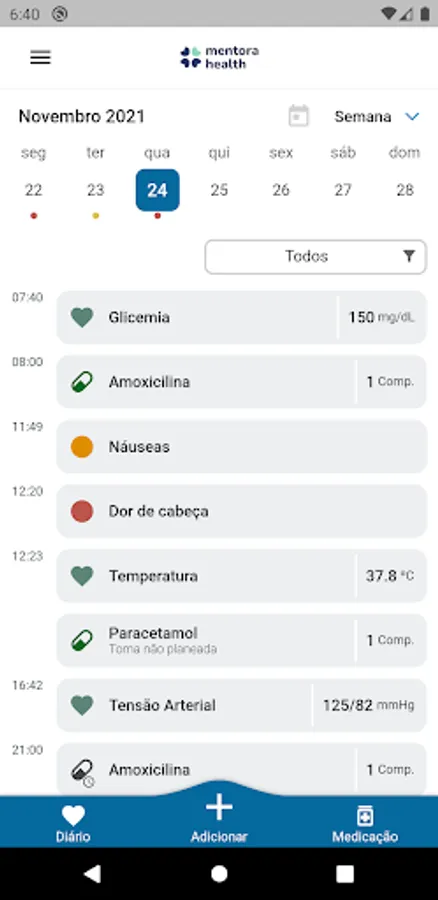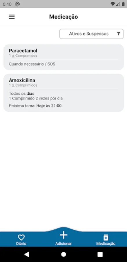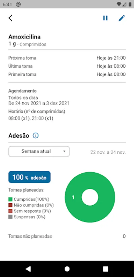 Register the medication with the possibility of scheduling, alarms and therapeutic adherence reports.