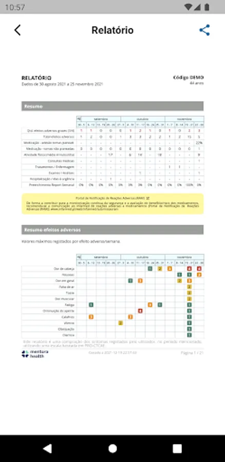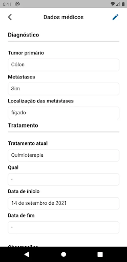 At this time, you can use the Mentor to record all the information that you consider relevant for a better management of your health, this record can also be useful for review and better communication with your oncologist/assistant physician in the next appointment/treatment.