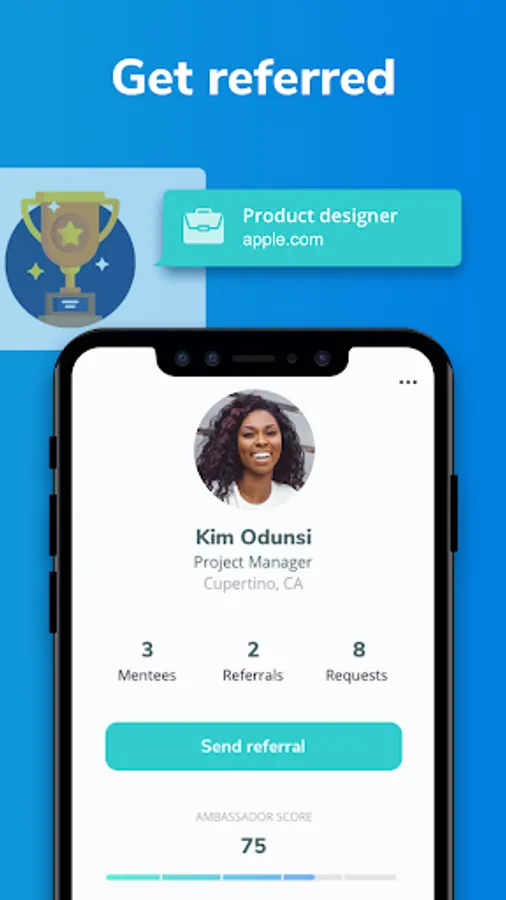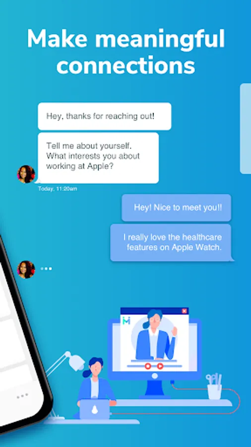Find a mentor to help you learn about their company, get referred to jobs, and prepare for interviews!