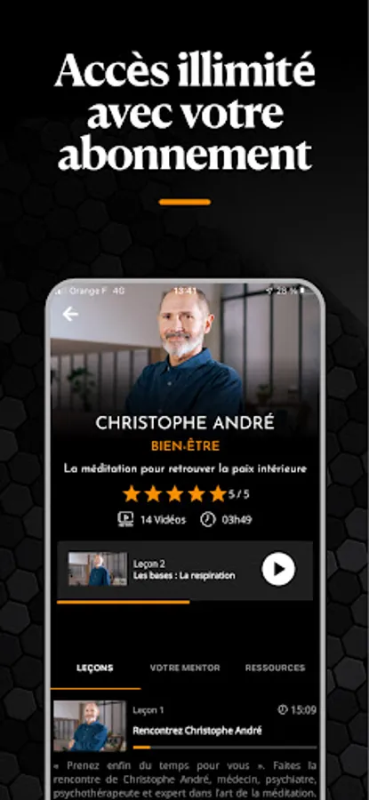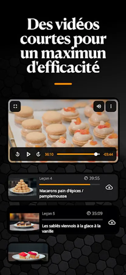 Our lessons last on average about fifteen minutes. An optimal time to learn without getting bored and take advantage of every available moment to progress. Follow each masterclass as you want: lesson by lesson... or all at once!