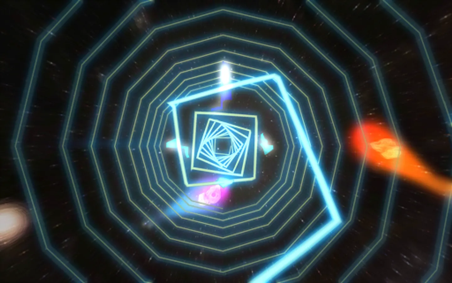 The game generates existing in nature math functions which react to in-game music in order to draw multiple patterns and fractals right before your eyes. Selected music influences the tunnel glow intensity, it's shape and speed.