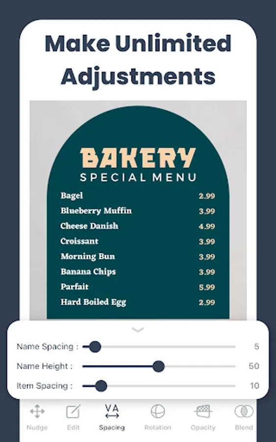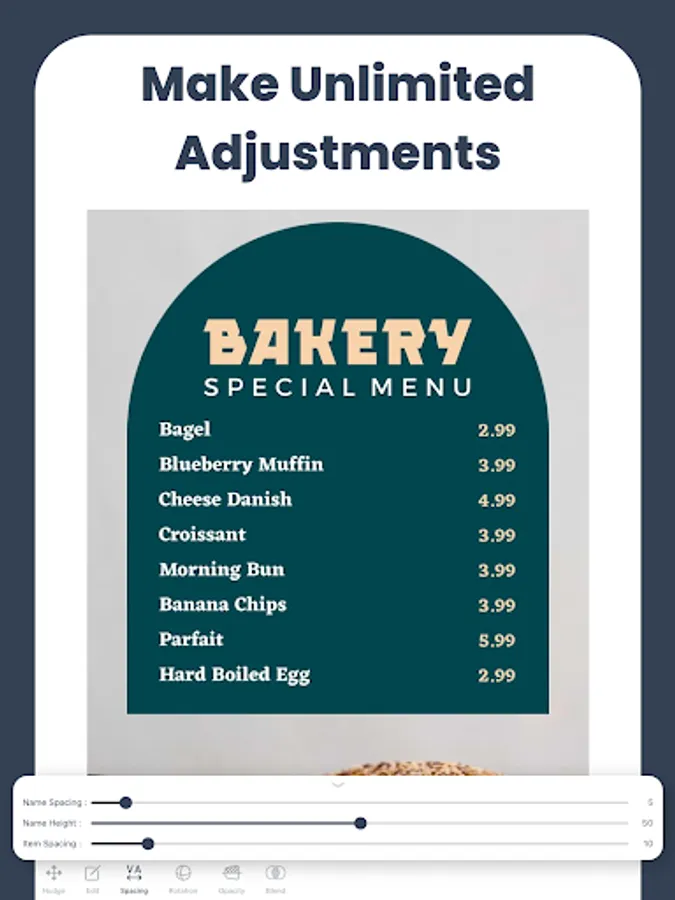 You can use a restaurant menu maker app by Lisi to create a menu on your own. It's quick & easy to use.