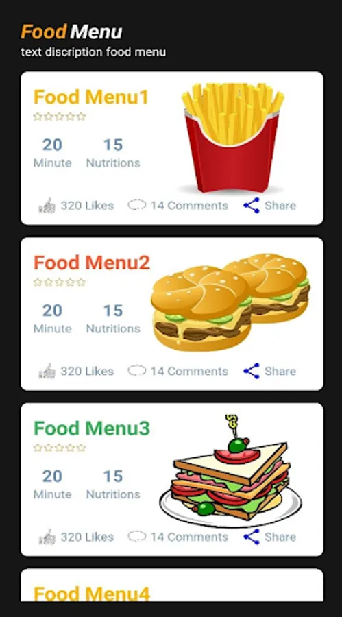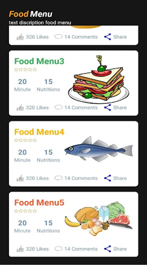 The app has several different dishes / types of food. Good design for businesses looking to create a food app for themselves.