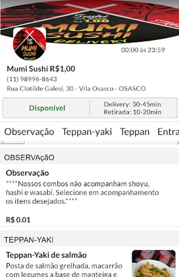 Now you can place your orders at Mumi Sushi R $ 1.00 directly through the app, it is very practical and you still get exclusive discounts.