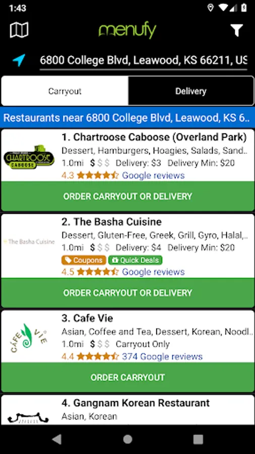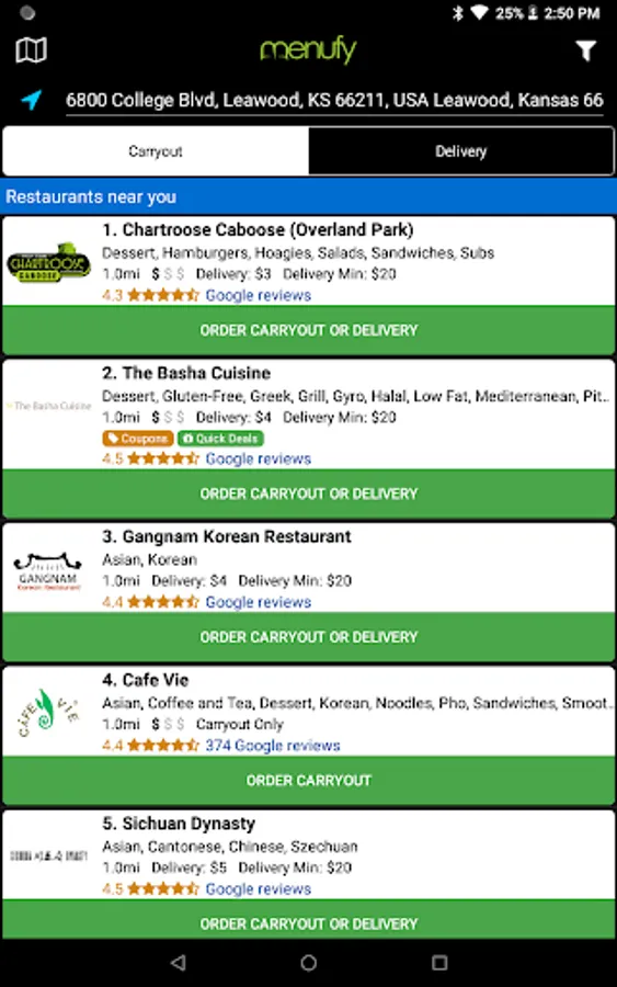 Now you can order Delivery or Carryout from your favorite restaurants easily and seamlessly, all from your Android device!