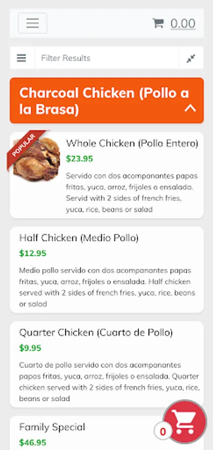 Besides the Peruvian Chicken Meals, a wide variety of Latin Food are available like chicken, beef, pork and fish served Mexican, Guatemalan and Peruvian Style. Prepared for Takeout or Delivery hot and fresh to your home.