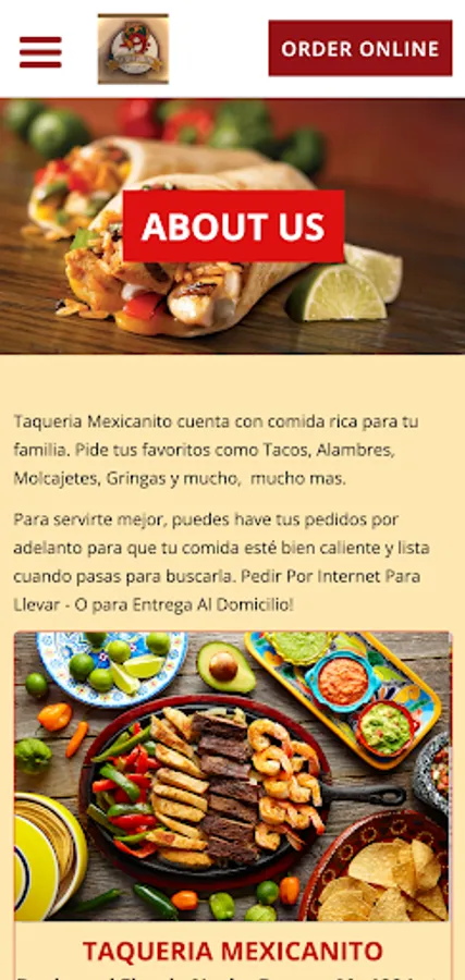 Taqueria Mexicanito cuenta con comida rica para tu familia. Pide tus favoritos como Tacos, Alambres, Molcajetes, Gringas y mucho, mucho mas.