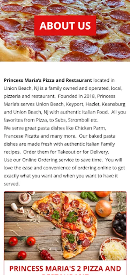 Princess Maria’s Pizza and Restaurant located in Brick, NJ is a family owned and operated, local, pizzeria and restaurant. Founded in 2018, Princess Maria’s serves Brick and Point Pleasant, NJ with authentic Italian Food. All you favorites from Pizza, to Subs, Stromboli etc.