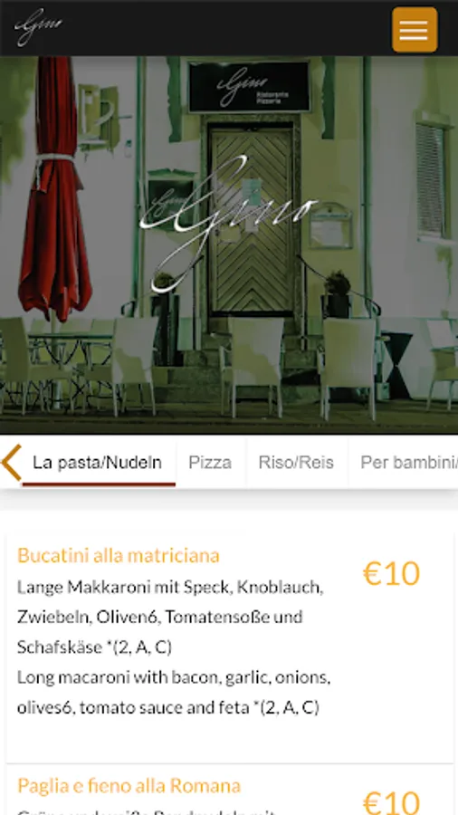 Am Rande der Nürtinger Altstadt, nicht weit vom Stadtzentrum finden Sie in einer ruhigen Wohnstraße das Restaurant Gino von Adriano Ciampini und Fausto Di Magno. Im elegant gemütlichem Ambiente des kleinen Restaurants vergessen Sie die Hektik des Alltages, und so können Sie sich ganz den Genüssen der italienischen Küche hingeben. An warmen schönen Tagen können Sie auch draußen unter Sonnenschirmen - ganz nach italienischer Lebensart - Platz nehmen und am beschaulichen Leben des Viertels teilhaben. Ob drinnen oder draußen - Sie werden die familäre Athmosphäre spüren und sich wohlfühlen, denn hier kümmern sich die Chefs persönlich um das Wohl ihrer Gäste. Natürlich immer unterstützt von einem zuverlässigen Team.