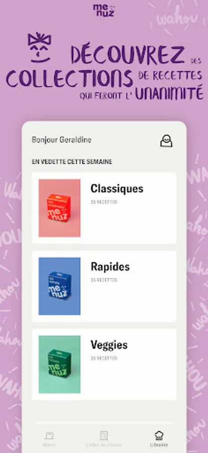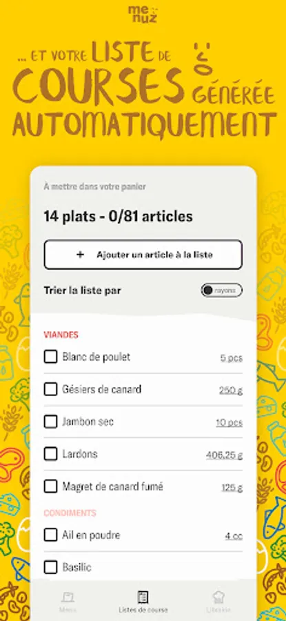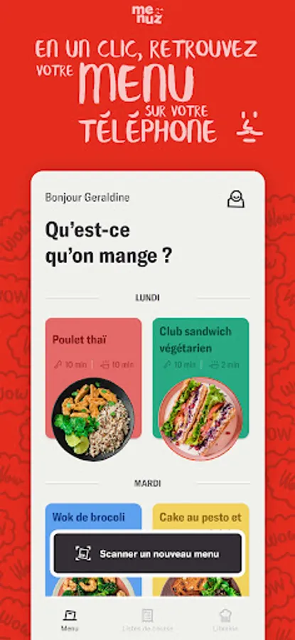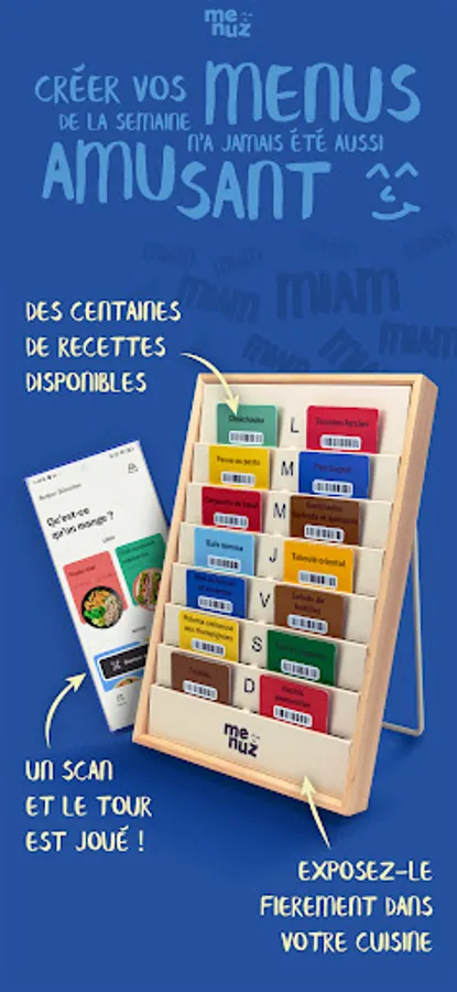 Menuz is the first organization system that allows you to discover recipes, create a weekly menu and generate the corresponding shopping list automatically.