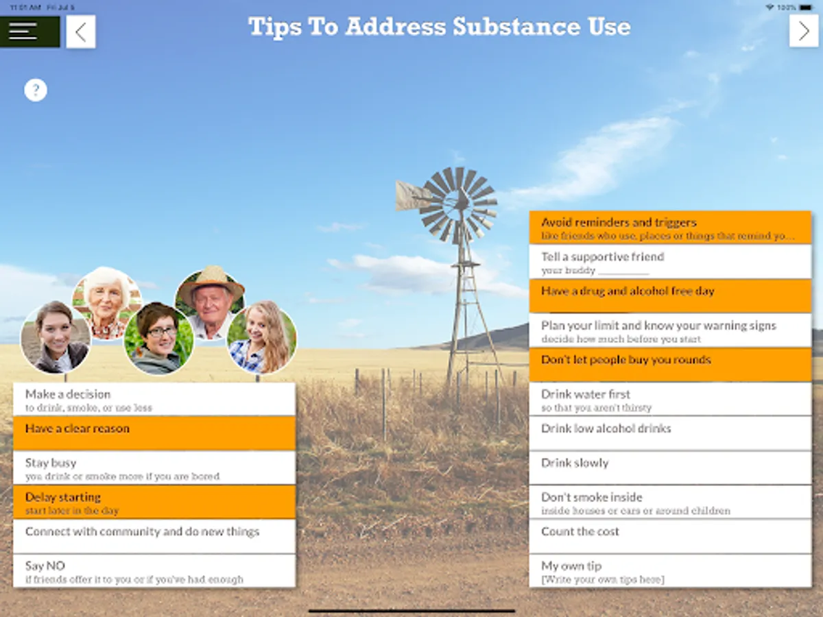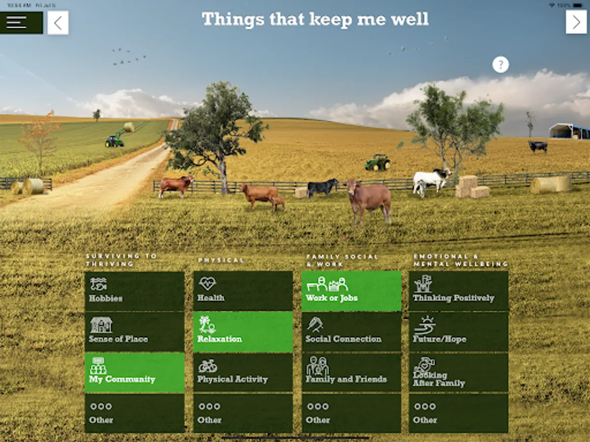 ‘Weathering Well’ provides a structured low intensity mental health, wellbeing and alcohol and drug intervention using strengths-based motivational interviewing and other evidence-based techniques. It has been specifically customised to support improvement in the mental health and wellbeing of Australian farming communities experiencing adversity from drought and other climatic stresses.