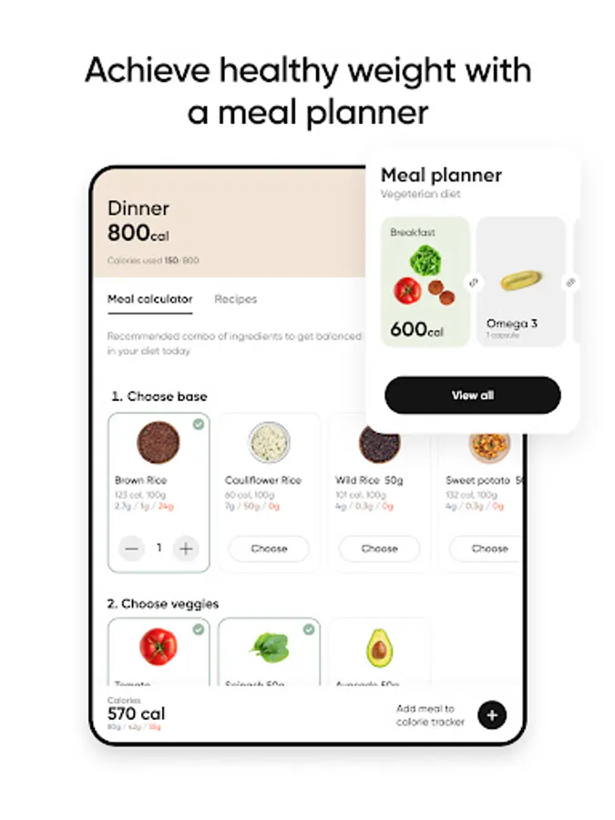• Achieve healthy weight with a meal planner, nutrition tips and a calorie tracker