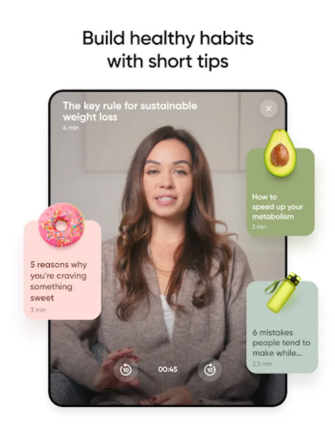 • Build healthy habits with personalized tips and quick masterclasses about well-being