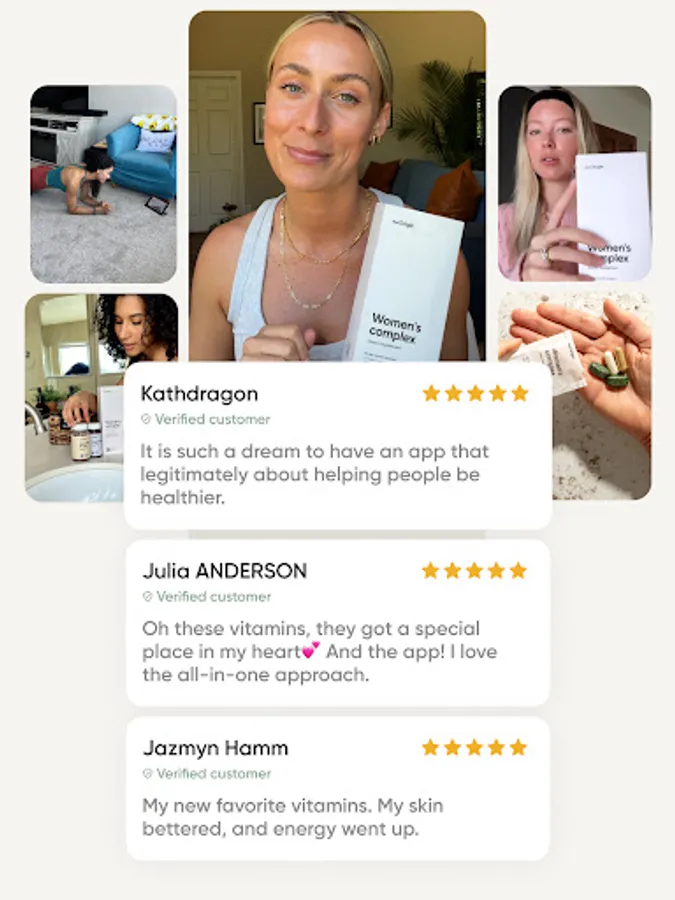 Achieve your wellness goals with a daily wellness program featuring personalized health tips, quick morning workouts, a meal planner, fasting and water trackers, guided meditations, breathing exercises and more. Plus, you can order a daily multivitamin to make the most out of your wellness program by filling nutrient gaps in your diet.