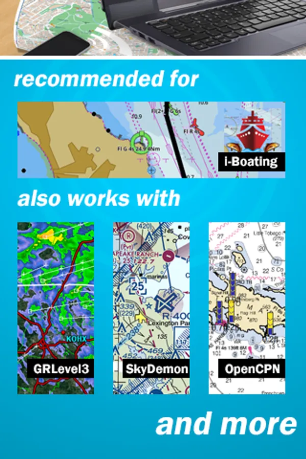 Share your GPS location over Bluetooth to nearly any device or software. Use with popular marine and aeronautical charting programs with the comfort of your PC, maps on another tablet, Android Wear or even to your own open-source Arduino or Raspberry hardware project**.