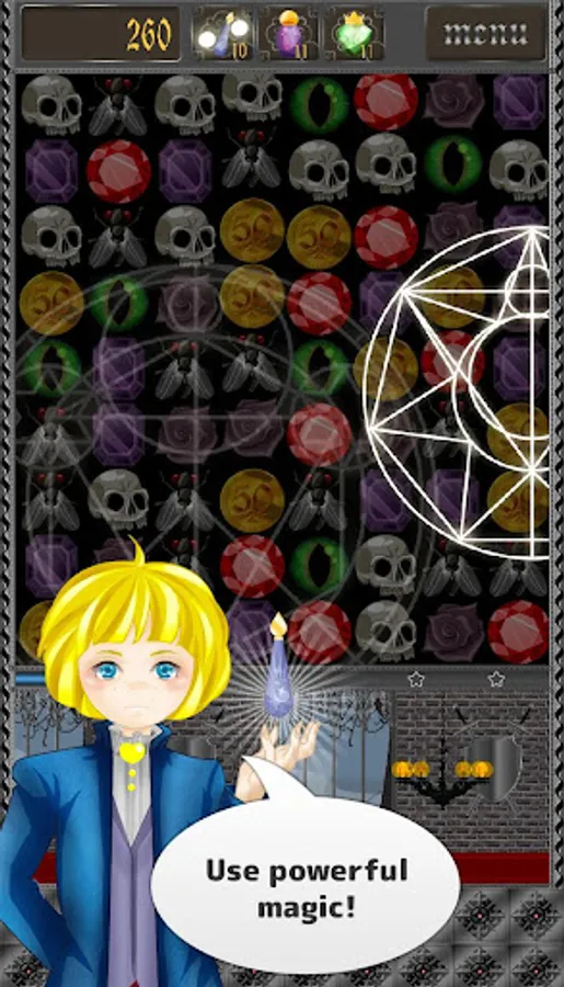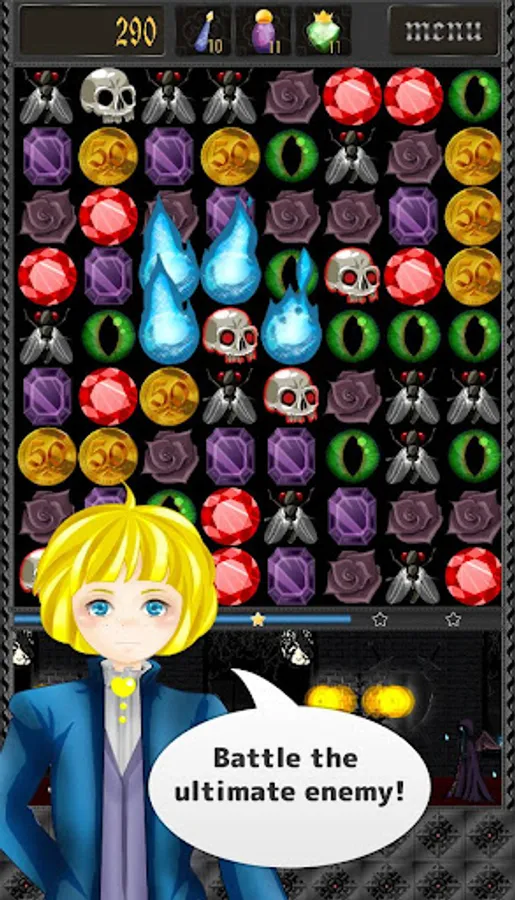 Match 4 or more to scare your way through 10 increasingly challenging stages. Help the princess rescue her kidnapped brother at the hands of an evil darkness!