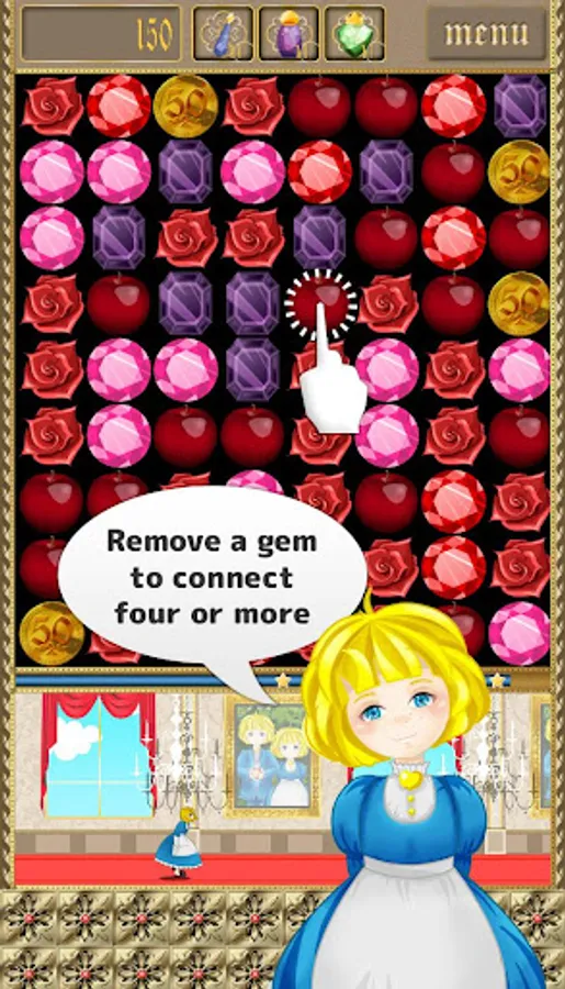 • Match 4 or more gems in a line by removing any other gem by touch.