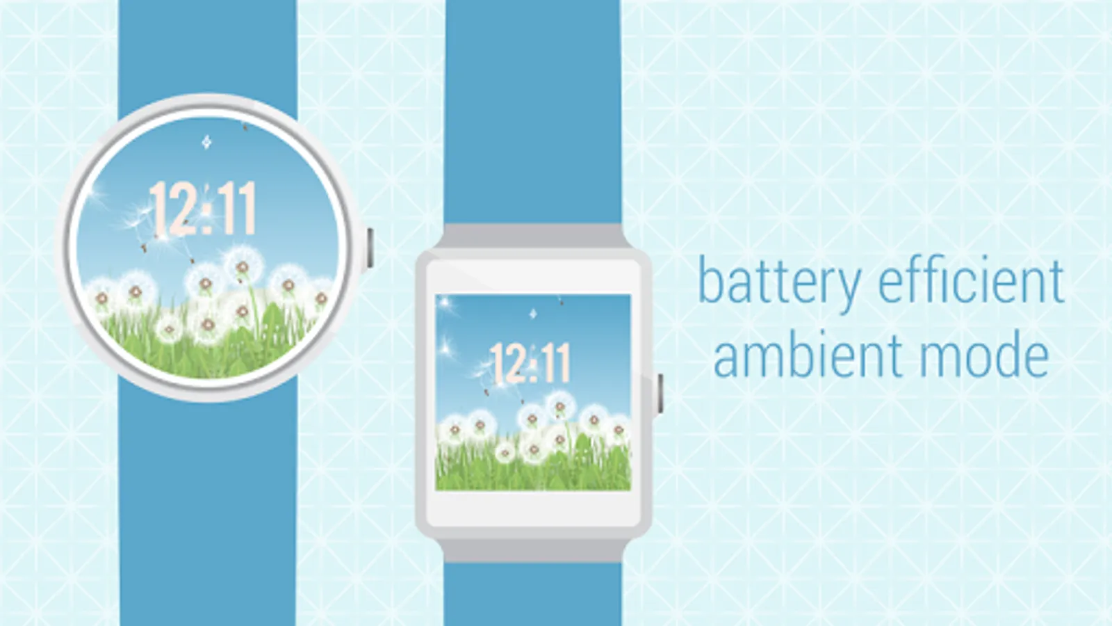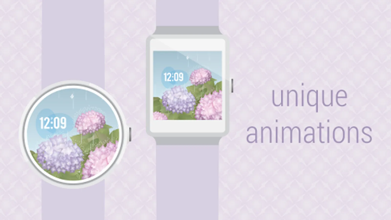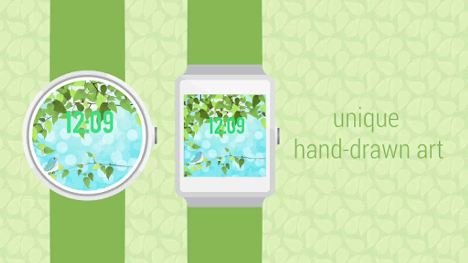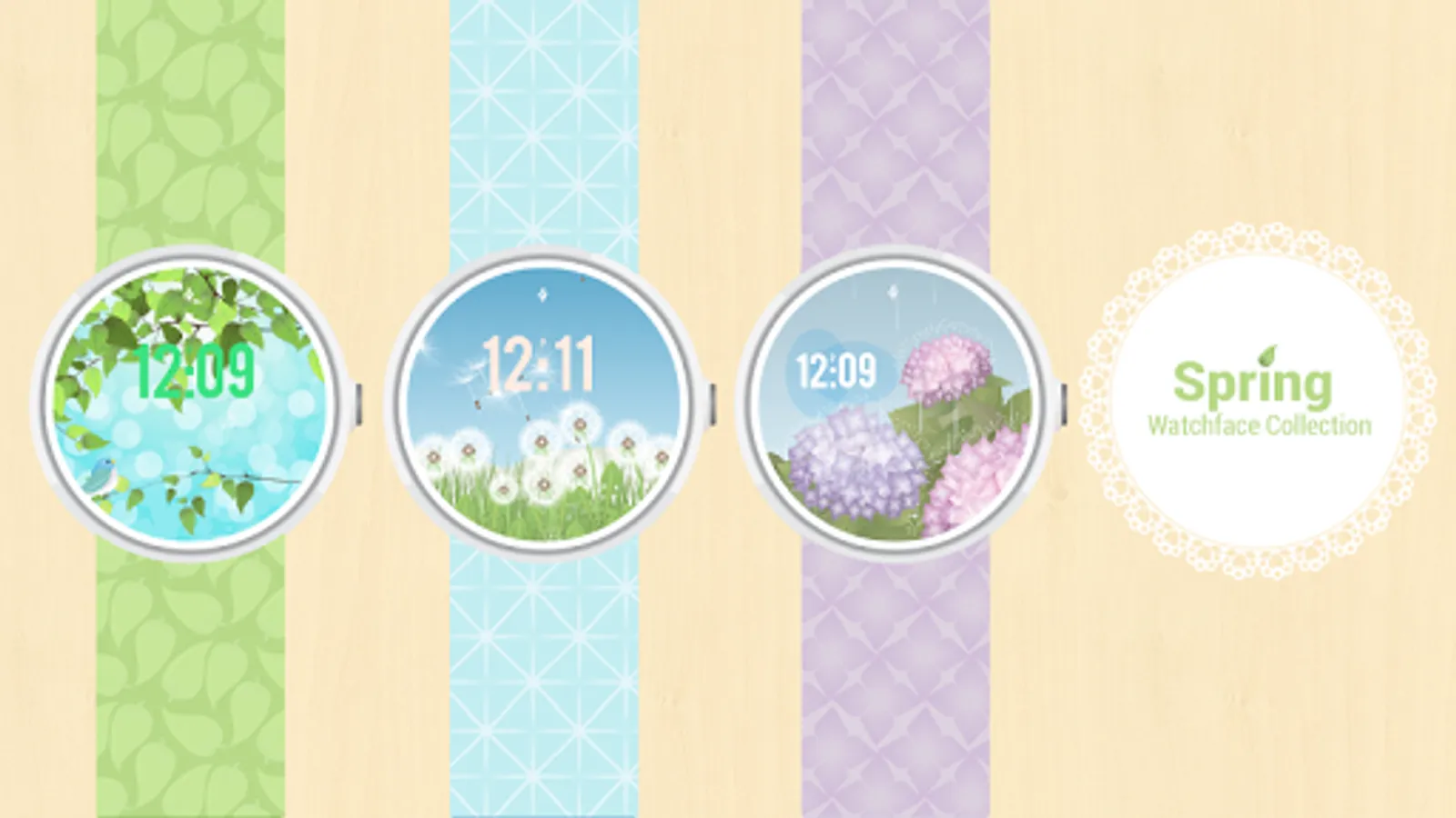 Open the Android Wear app on your phone or tablet, touch the watch face you want to appear on your Android Wear device. (Dandelion, Hydrangea, or Spring Bird). Change options by touching the gear icon.