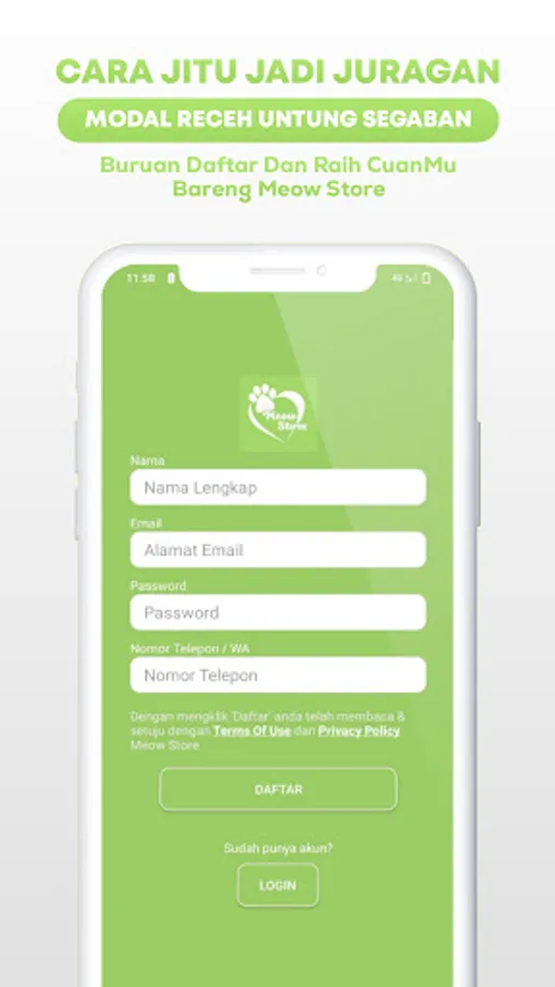 4. Become a Meow store agent with the best service such as complete products at the lowest prices, transactions are seconds away, top ups are easier and CS is on standby 24 hours