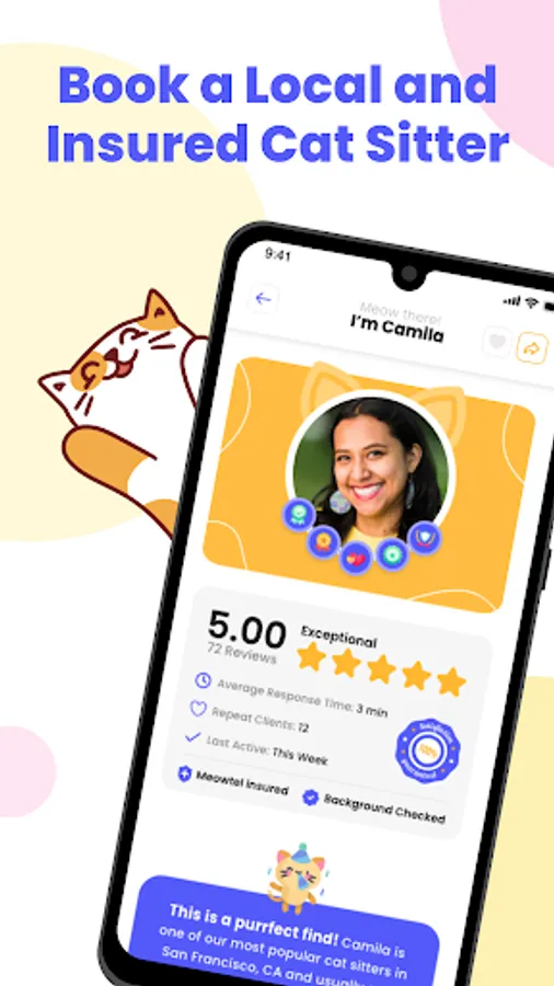 Let us bring the purrfect hospitality to you! Meowtel allows you to book trusted, in-home cat sitters who are 5-step vetted and fully insured.