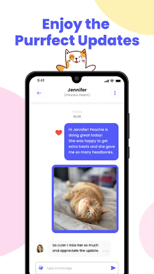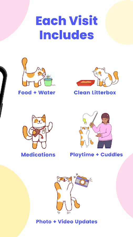 Your sitter will conduct a free Meet & Greet with you to review care instructions, home logistics, and pick up a key. Whenever your sitter visits the kitties, you will receive text updates and at least one photo or video letting you know the kitties are having a purrific staycation at home.