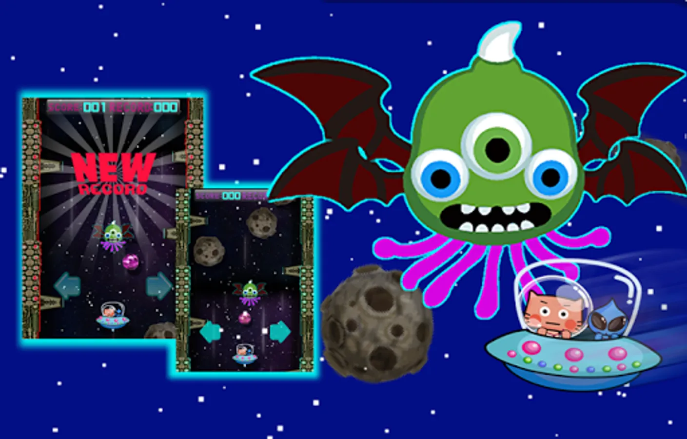 Touch left or right area to move the UFO; tap the UFO to trigger the lazer.