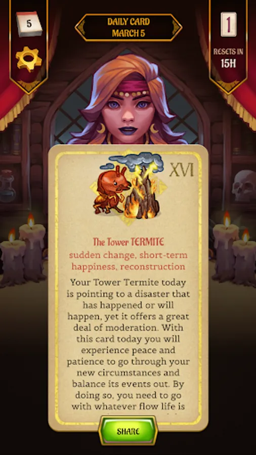 Mystical Melonie is a FREE NO ADs Major Arcana Tarot deck. Melonie, from the popular social farming game Big Barn World, will give you a free daily and weekly reading based on your Tarot card selections. The Tarot cards possess a unique style in that each Major Arcana card is represented by an animal from Big Barn World. For example, Strength is represented by a Lion which reflects a level of courage and bravery.