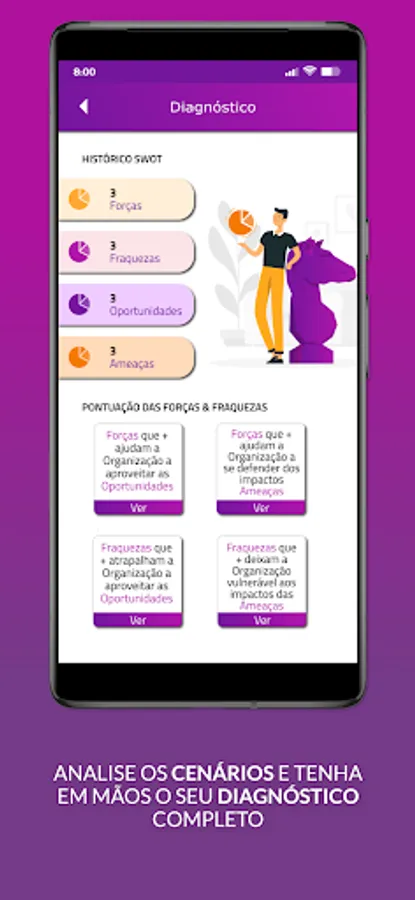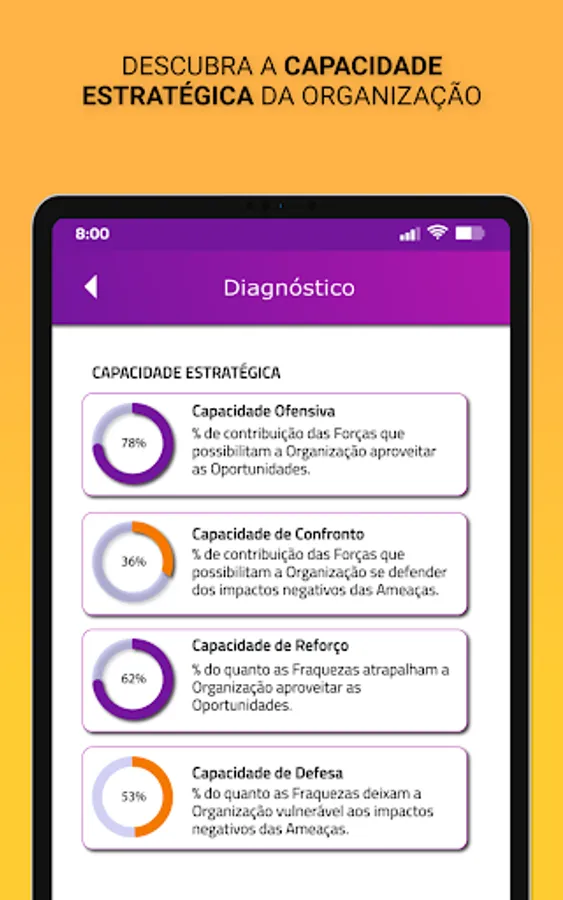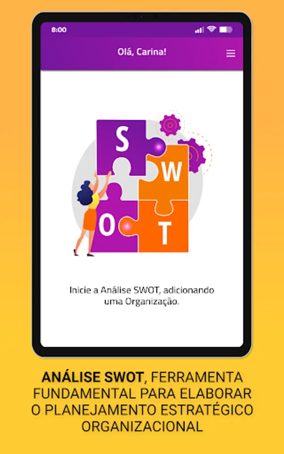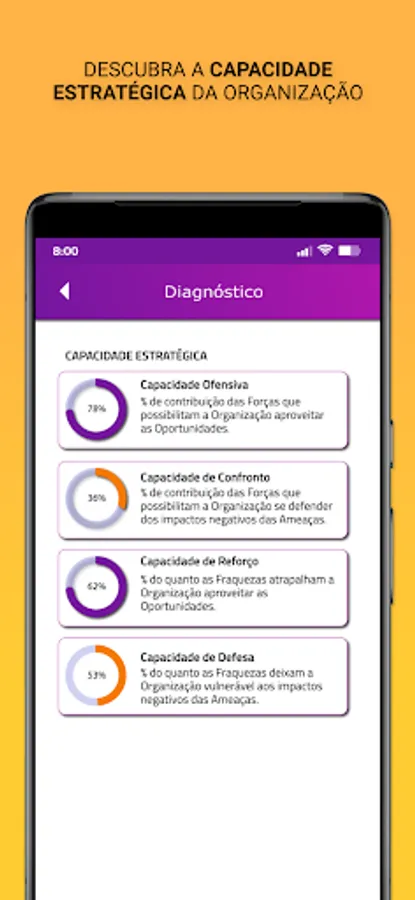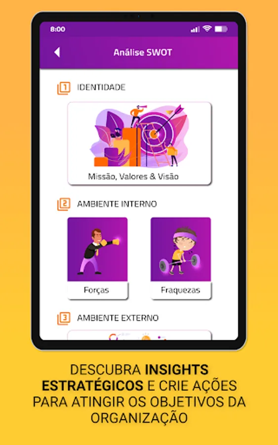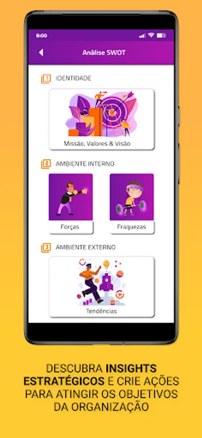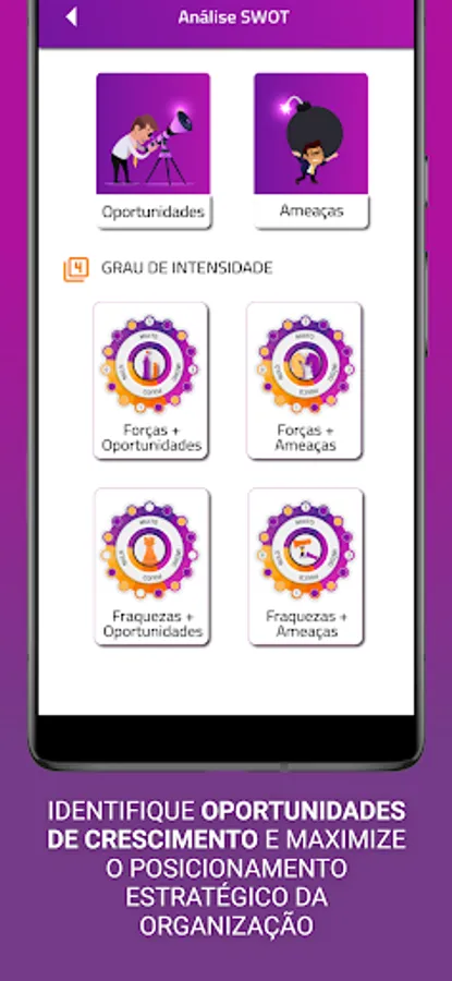 Register your Organization's strengths, weaknesses, opportunities and threats, perform detailed analyzes and obtain valuable strategic insights through this innovative application.