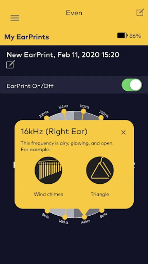 You can also use it to explore how your hearing changes over time. That’s because the EVEN App features detailed visualizations of your EarPrints, and you can reset your EarPrint as many times as you like. You’ve never seen - or heard - anything like it.