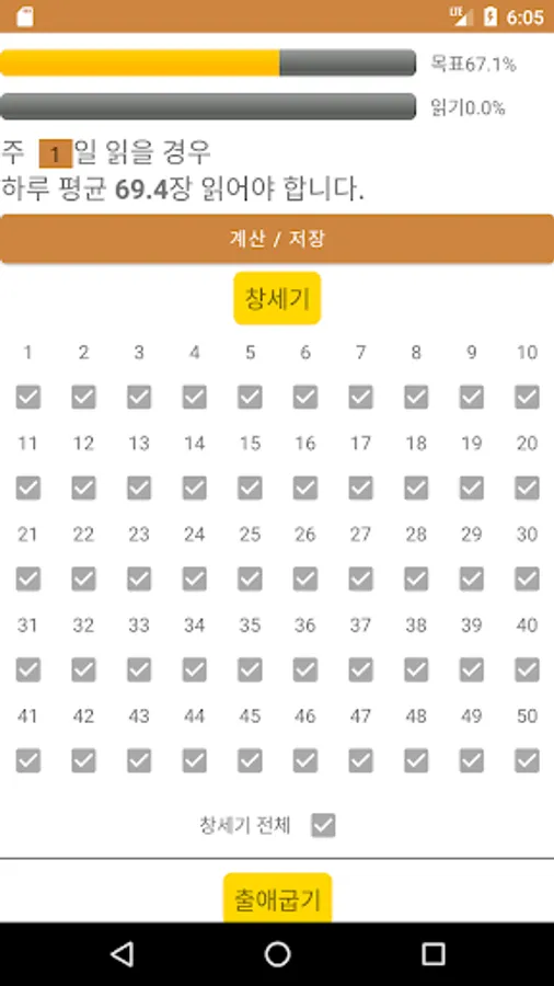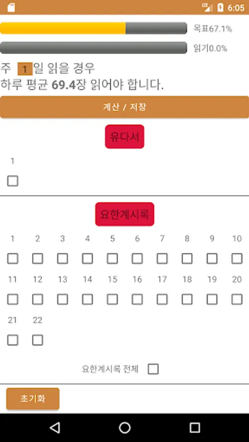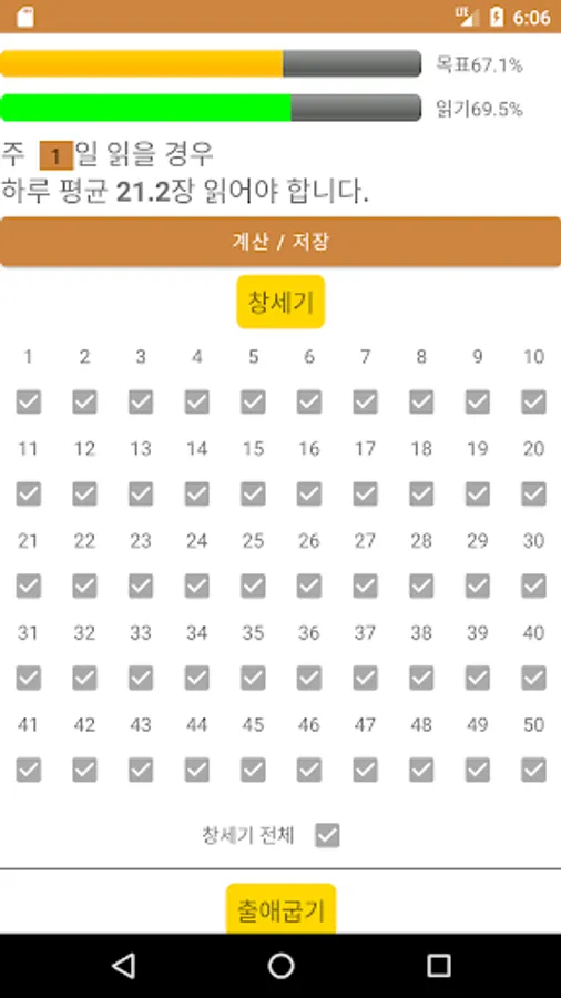 Bible Reading 1 Year 1 is an app that helps you read the Bible once a year. It is an app that tells you how many chapters you need to read a day by checking the amount you have read so far and dividing the remaining amount by the number of days remaining. The number of verses for each chapter is different.