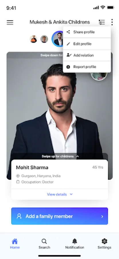 A powerful way to get even more connected to your family, this mobile app has stunning features that you may not have seen yet in any app. Have you tried using Mera Family? If not, try today. But before that, read on to know more about the app that will stay with you for lifetime. With a smart phone and connected internet on your device, Mera Family is the most loved Family App that has made thousands of people smile. You can simply search for your family members just by entering a phone number or email ID. You can also add new members, modify the members in the group, get information about your ancestors and much more. If this wasn't enough, you can share pictures, videos, live experiences and much more with your family. Not only this, you can get elegant family tree on your device and print it out to frame it on wall.