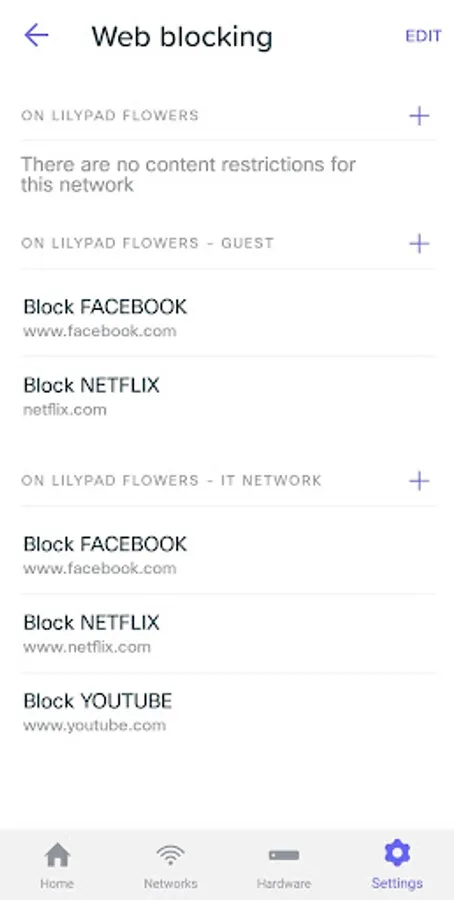 * Prioritize bandwidth, set usage limits, or block websites easily