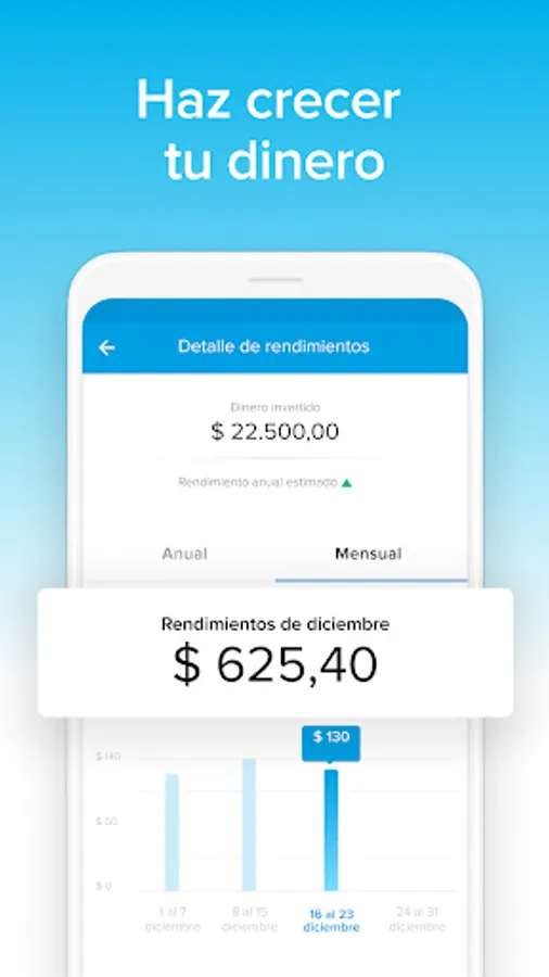 Daily returns: Generate daily returns on your account, it's simple and you activate it through the app. Transfer money with a debit card or money in an account and cash in stores.
