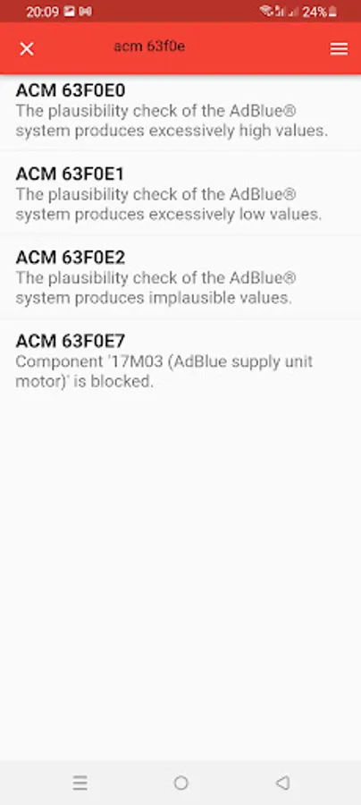Example Mercedes fault code: ACM 230D01, search 230D01 or ACM 230D01 You will get the exact meaning of the error in the application. The temperature in the AdBlue® tank is too low.