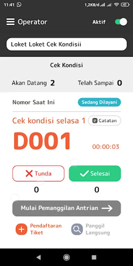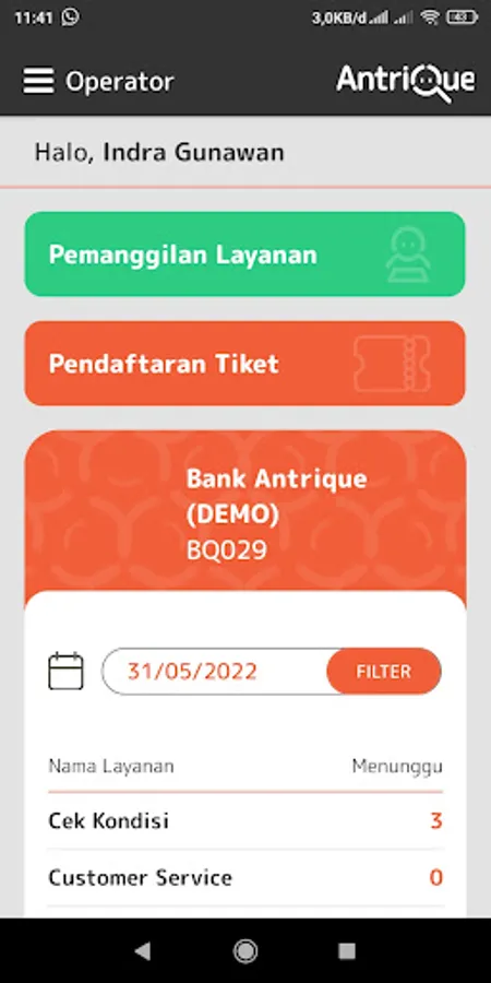 Aplikasi untuk pemanggilan Antrian oleh penyedia layanan AntriQue.