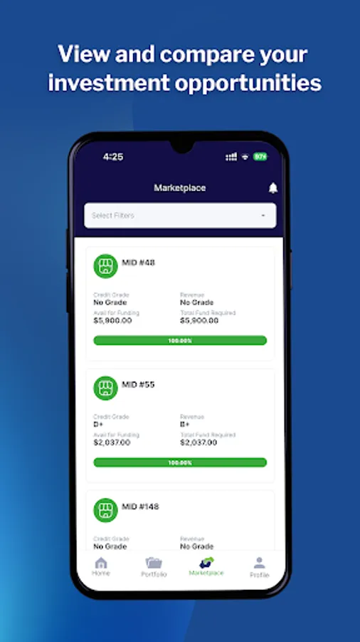 Empower America's small businesses with the Merchant Marketplace Investor Mobile App. Designed exclusively for forward-thinking investors, this app bridges the gap between your finances and the growth of small enterprises across the nation.