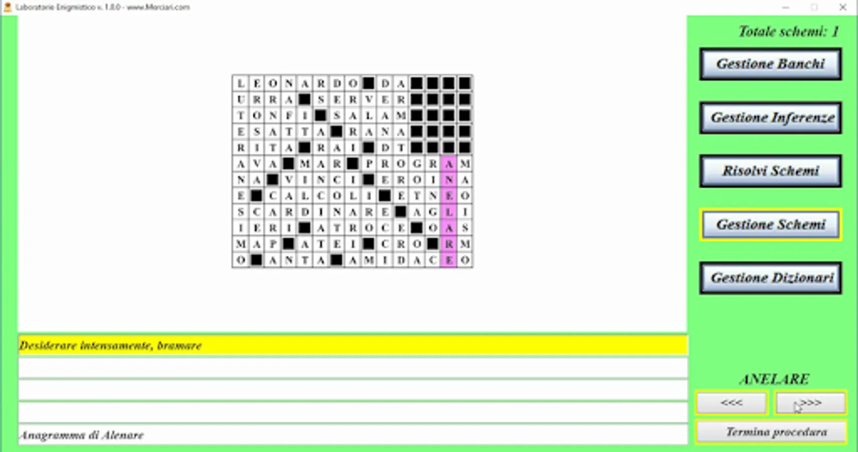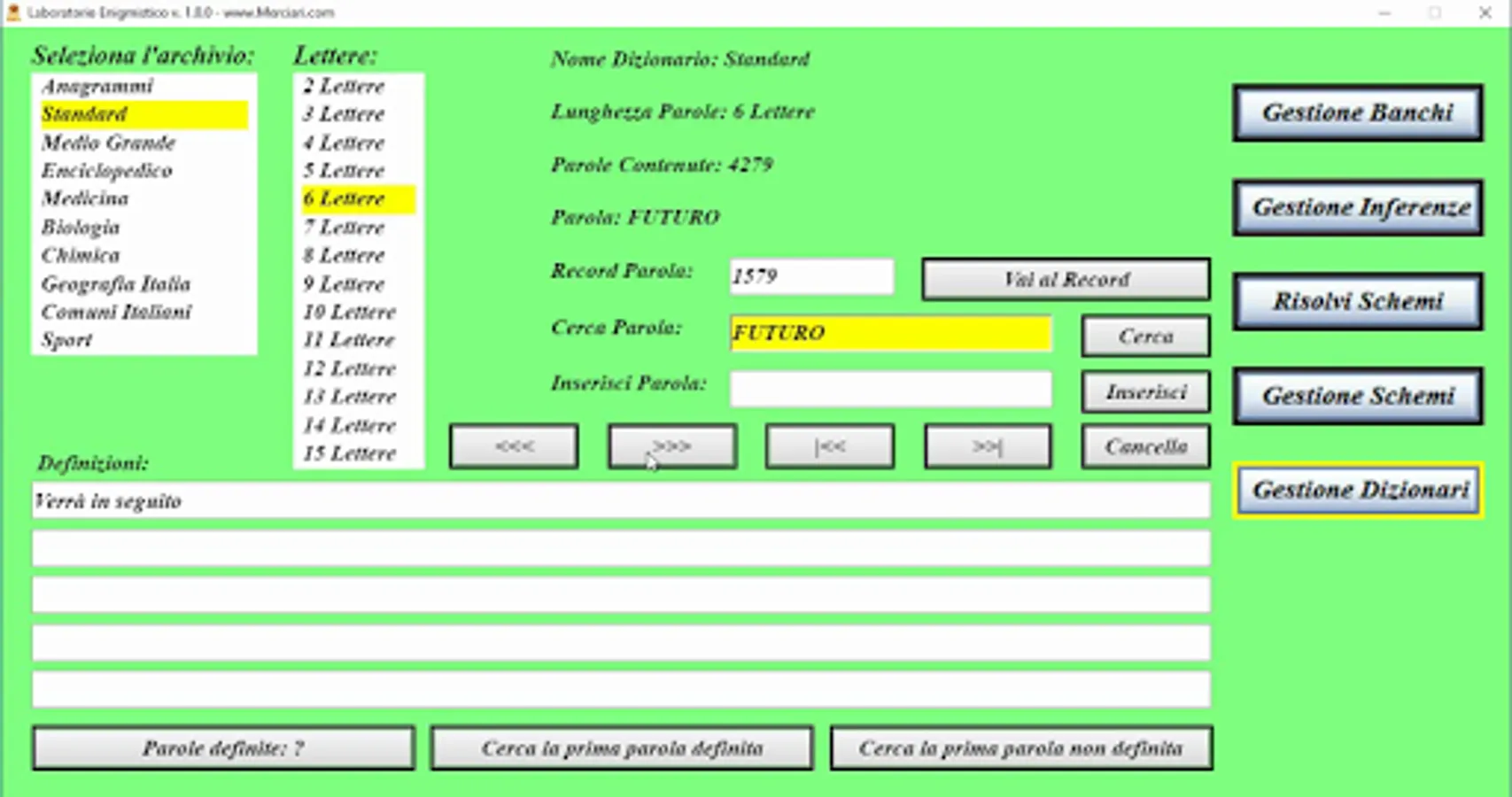 "Laboratorio Enigmistico" is equipped with several lists of words to have a good management of definitions.