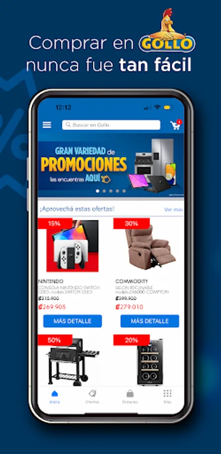 Gollo app in Costa Rica in which you can buy all the products available in our stores, take advantage of exclusive promotions of the application, pay your fees, view your account statements and communicate with our advisors to carry out all the procedures you need. Buy on credit or in cash from the application and receive your products with delivery in 24 hours throughout the country.