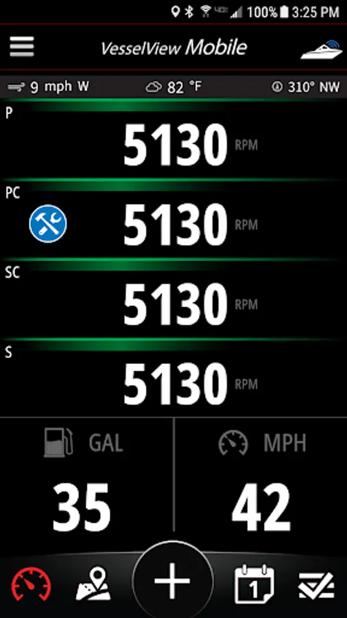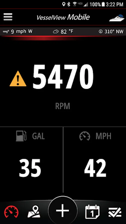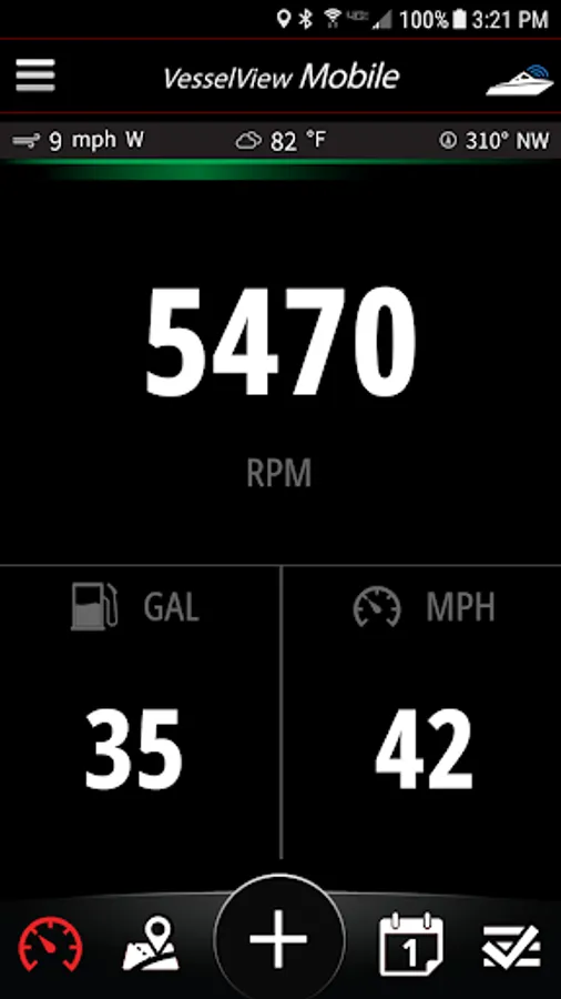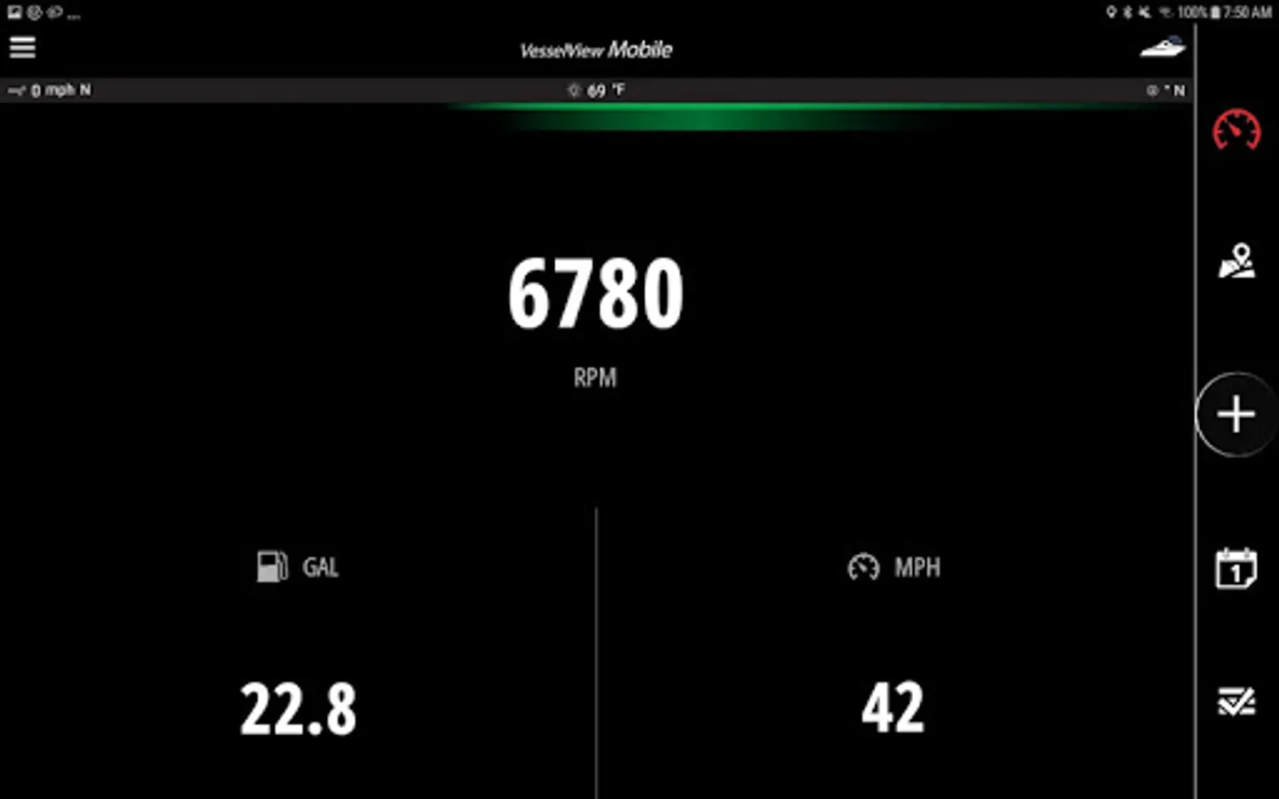 • View live SmartCraft® engine data : RPM, Battery Voltage, Engine Temperature, Engine Hours, Oil Temperature, Oil Pressure, Coolant Temperature, Sea Temperature and more!