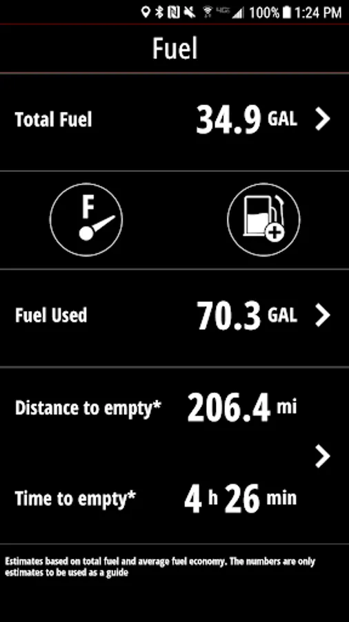 • Average speed and fuel economy is calculated and used to estimate Distance to Empty and Time to Empty