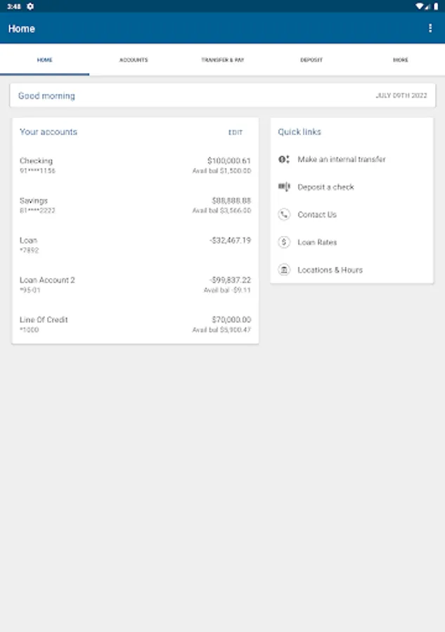 Access your accounts when and where you want right in the palm of your hand. It’s fast, secure and free access to your accounts anytime, anywhere. You have access to check your balances, pay bills and transfer money...while you are on the go!